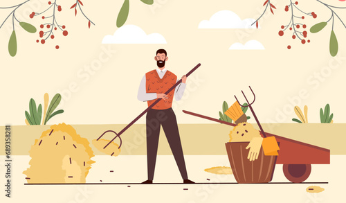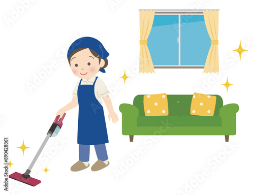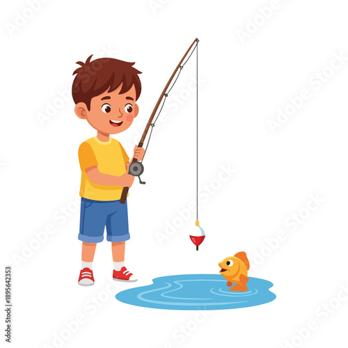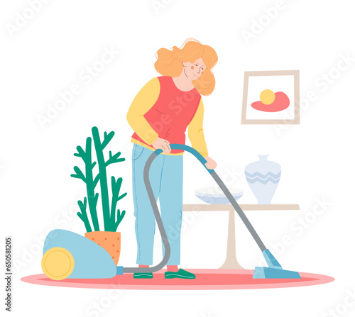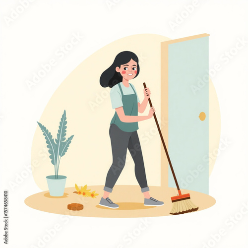 Милый мальчик подметает пол метлой, помогает родителям с уборкой дома, плоская векторная иллюстрация. Детские домашние хлопоты и ответственность.