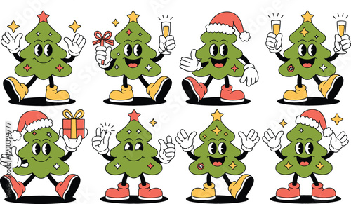 Милый вектор кактуса. Мультяшный набор кактусов. Счастливая цветочная семья, ковбой и мексиканский старшеклассник, иллюстрация колючей королевы в горшке, изолированная на белом фоне. Нарисуйте тропический цветочный горшок и эмодзи с колючими растениями