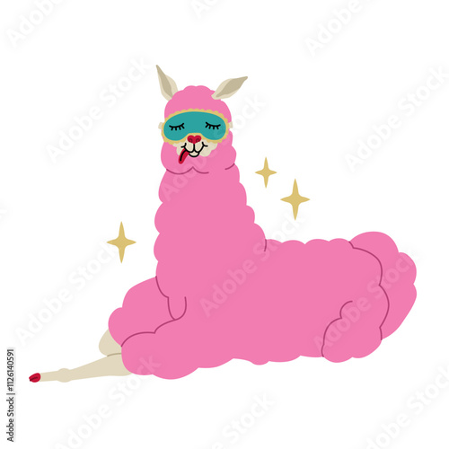 Милые мультяшные ламы альпаки медитируют в позе лотоса йоги векторная иллюстрация, изолированная на белом фоне. Концепция медитации, осознанности и снятия стресса