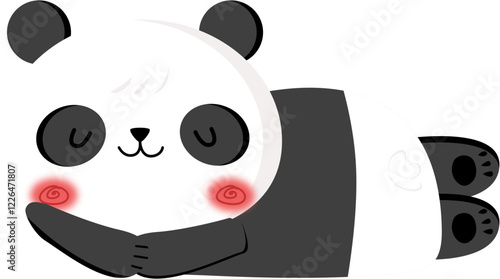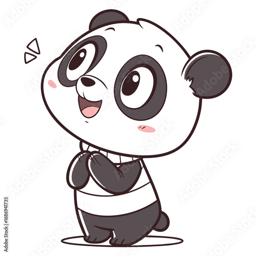 Милый мультяшный вектор панды. Значок животного-медведя. Забавный персонаж-медвежонок со счастливым лицом, пьющий чай или кофе, изолированный на белом фоне