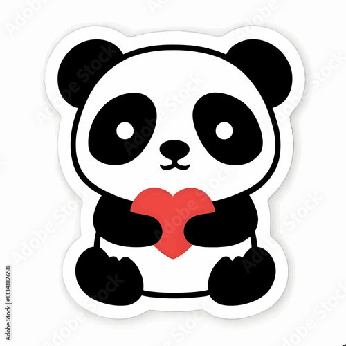 Милый мультяшный вектор панды. Значок животного-медведя. Забавный персонаж-медвежонок со счастливым лицом, держащий плакат с надписью "Люблю тебя", изолированный на белом фоне