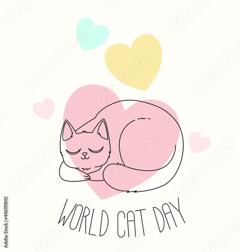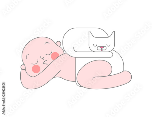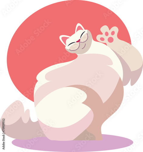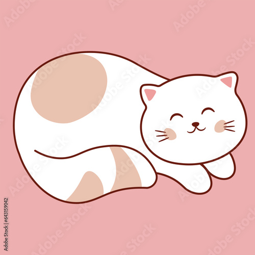 Милый кот в векторе. Мультяшное животное. Иллюстрация персонажа котенка. Забавный питомец, свернувшийся калачиком и спящий со значком сладких снов, выделенным на белом фоне