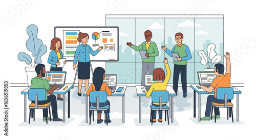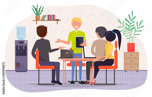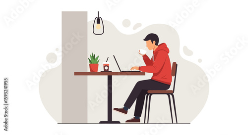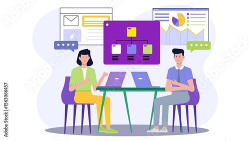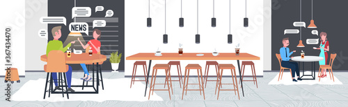 Симпатичная пара пьет кофе и разговаривает друг с другом, сидя за столом в кафе, векторная иллюстрация дизайна в плоском стиле. Молодые люди посещают кафе. Счастливая влюбленная романтическая пара на свидании.
