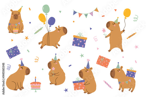 Набор персонажей мультфильма "Милая корова", плоская векторная изолированная иллюстрация. Забавные животные на ферме спят, пьют молоко, держат бутылку, ведро, картонную коробку для молока. Молочная промышленность, сельское хозяйство.