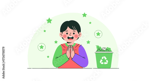 Милая волшебница с волшебной палочкой в векторе. Мультяшный персонаж в красивой шляпе, иллюстрация значка костюма. Ребенок-волшебник из волшебной сказки, движущийся изолированно на белом фоне