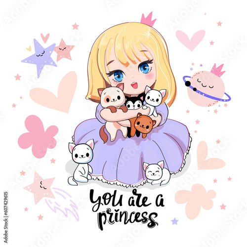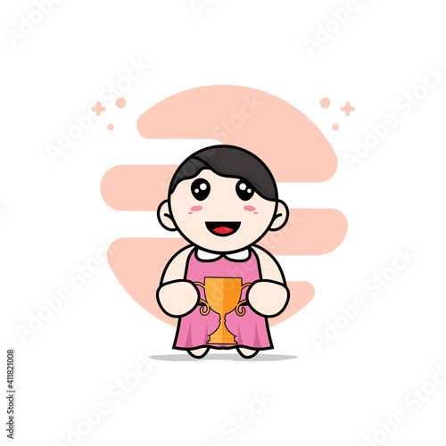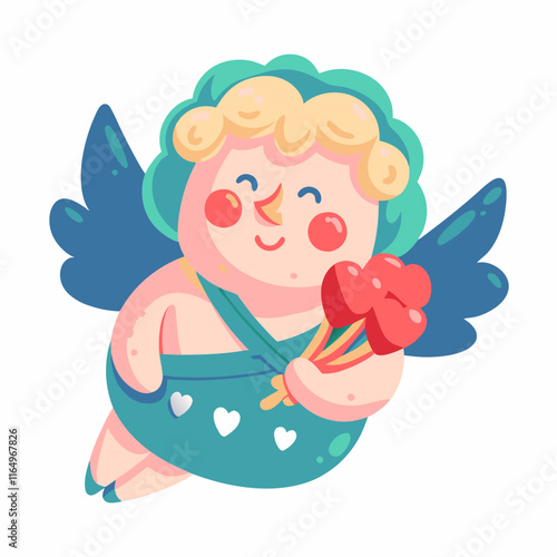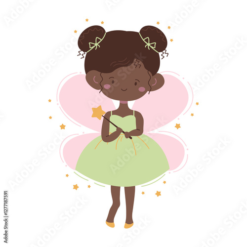 Векторная иллюстрация милой феи. Мультяшный персонаж-волшебница с крыльями. Сказочная принцесса в костюме бежит, держа в руках цветок и нюхая его. Маленькая лесная фея в стиле фэнтези, выделенная на белом фоне