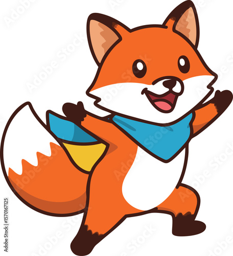 Вектор лисы. Значок милой танцовщицы. Иллюстрации к спорту, гимнастике и фитнесу. Кавайный мультяшный персонаж-животное, изолированный на белом фоне