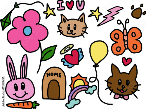 Милый набор конструкторов персонажей мультфильмов о монстрах, плоская векторная изолированная иллюстрация. Забавные части тела животных и существ. Инопланетные глаза, уши, рога, рты, зубы, ноги, руки, хвосты для создания монстров
