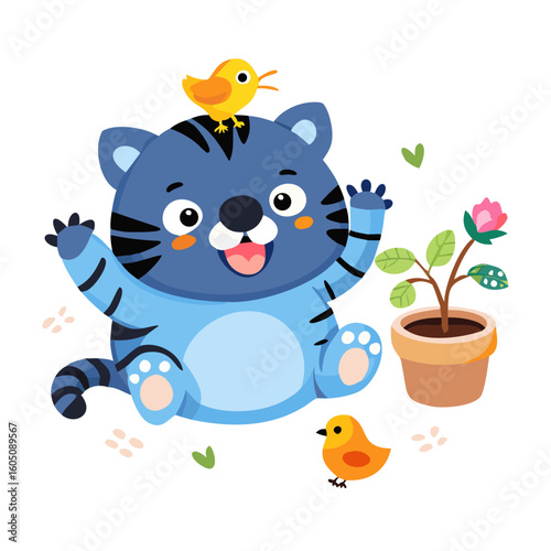 Симпатичная сова с векторным значком мультфильма "Весенний цветок". Персонаж из мультфильма "Лесная птица" наслаждается весенним сезоном, изолированный на белом фоне