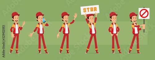 Изолированный векторный набор школьных принадлежностей с симпатичным карандашным персонажем. Забавные эмодзи с разными эмоциями. Забавный мультфильм, пишущий ручкой, задающий вопрос и смотрящий на иллюстрацию будильника