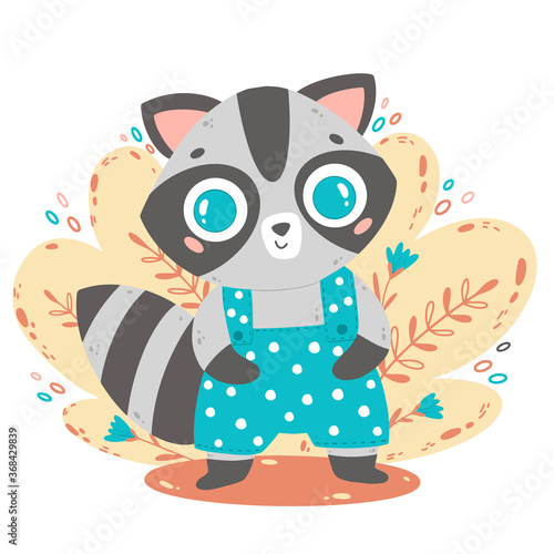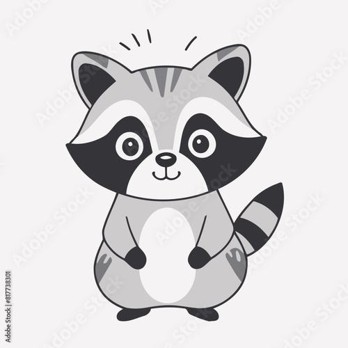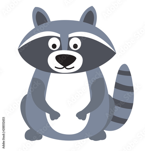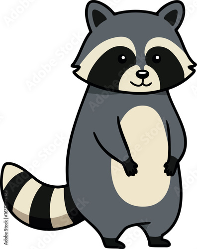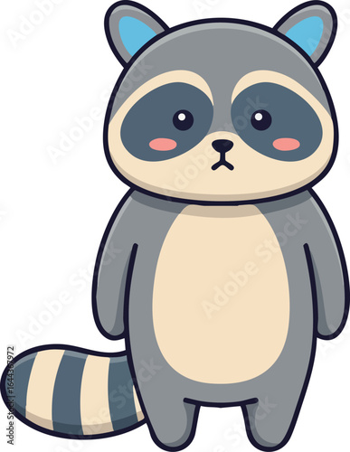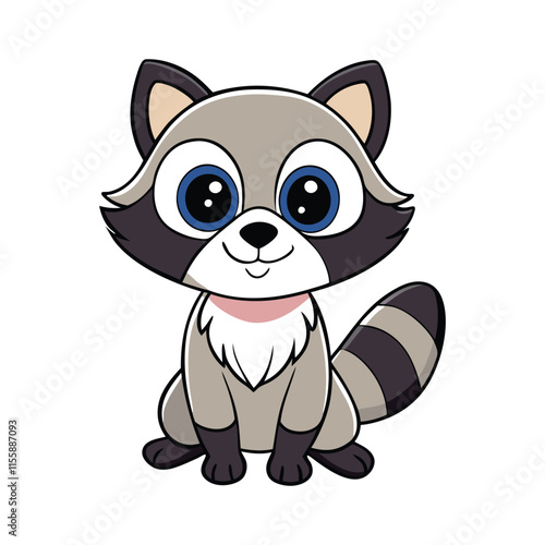 Милый енот с сердечком в векторе. Забавный персонаж лесного животного влюбляется в мультяшную иконку-иллюстрацию, изолированную на белом фоне