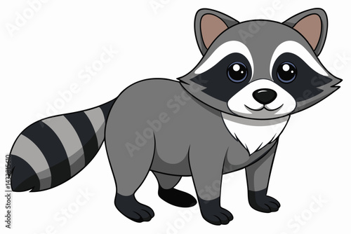 Милый енот в векторе. Забавный лесной персонаж, несущий сладкий торт в лапе, мультяшная иллюстрация со значком, изолированная на белом фоне. Поздравление с днем рождения