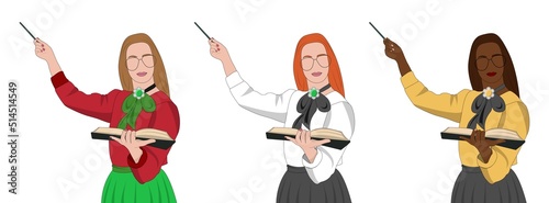 Набор векторных символов школьной кисти, изолированных на белом фоне. Милые мультяшные талисманы с разным выражением лица и эмоциями на лице. Иллюстрация элементов "Назад в школу"