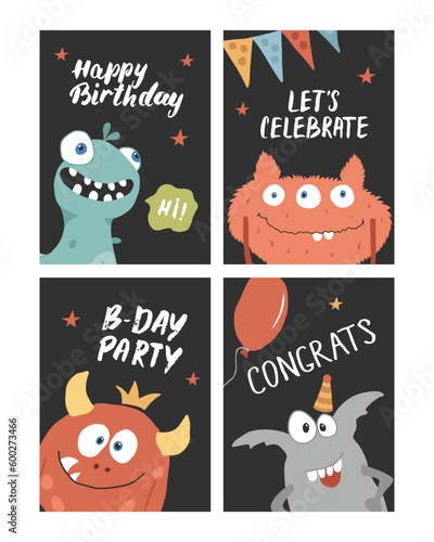 Векторный набор открыток с милыми спящими кошками и рукописными цитатами. Векторная иллюстрация забавных кошек с пейзажем ночного неба.