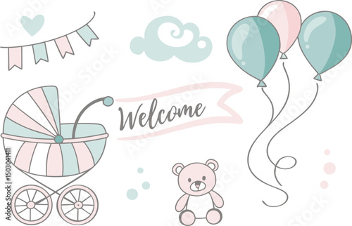 Векторная иконка милого весеннего кота, летящего на воздушном шаре. Значок милого животного для оформления открытки. Персонаж-путешественник-котенок, изолированная иллюстрация на белом фоне