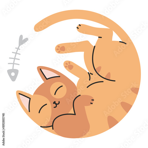 Милый кот в векторе. Мультяшное животное. Иллюстрация персонажа ленивого котенка. Забавный полосатый питомец, протягивающий лапу и спину, выделенный на белом фоне