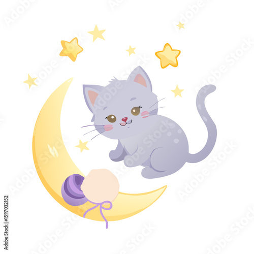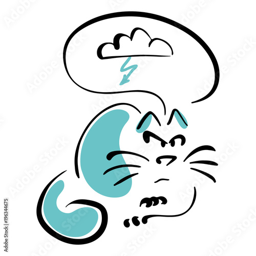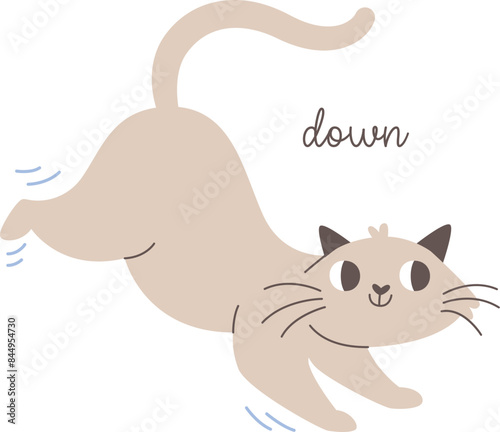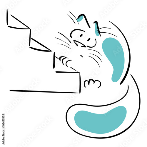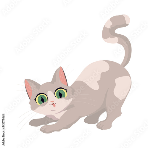 Зимняя кошка, завернутая в векторный шарф. Иллюстрация значка милого домашнего животного. Персонаж-котенок в забавной вязаной одежде на Рождество, новогоднюю поздравительную открытку с каракулями, изолированными на белом фоне