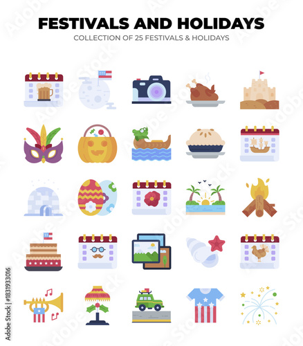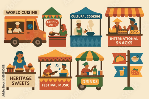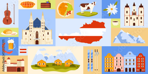 Набор изолированных значков и символов Чешской республики. Векторная иллюстрация традиционной национальной еды и напитков, достопримечательности и архитектуры, знака и флага