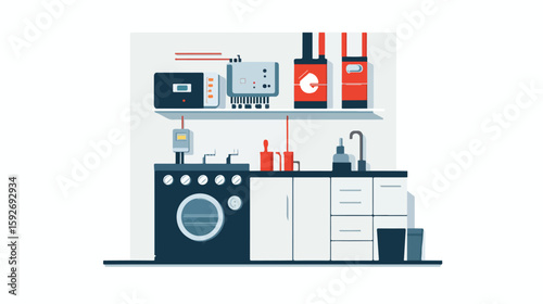 Повседневная жизнь. Молодой человек принимает душ в ванной комнате, плоская векторная иллюстрация. Ежедневная утренняя рутина, повседневные дела.