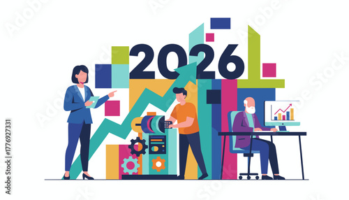 Аналитики данных, микро-персонажи мужского и женского пола, анализирующие статистические данные аналитических диаграмм на экране планшета, векторная иллюстрация дизайна в плоском стиле. Бизнес-аналитика, анализ финансовых данных.