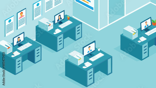 Оборудование для кондиционирования воздуха в центре обработки данных, плоская векторная изометрическая иллюстрация. Система охлаждения для управления вентиляцией и температурой в серверной комнате.