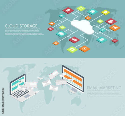 Векторная плоская изометрическая блок-схема центра обработки данных с облачным сервисом, безопасностью, контролем энергопотребления, беспроводными технологиями, файловым хостингом, символами инфографики для экономии денег.