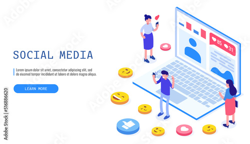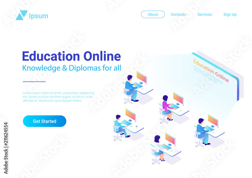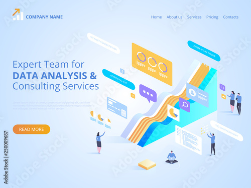 Дизайн целевой страницы синхронизации данных, шаблон баннера веб-сайта, плоская векторная изометрическая иллюстрация. Процесс синхронизации данных между портативными компьютерами и устройствами мобильных телефонов.