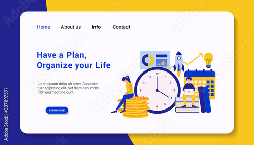 Векторный шаблон веб-сайта Deadline, дизайн веб-страницы и целевой страницы для разработки веб-сайтов и мобильных сайтов. Оптимизация задач, концепция тайм-менеджмента.