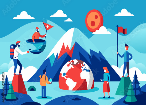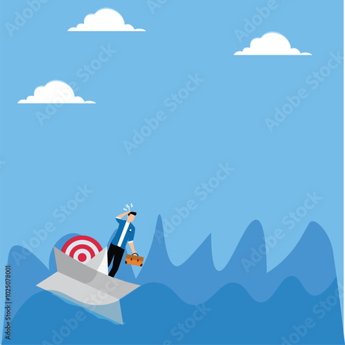 Векторная концепция принятия решений, иллюстрация в стиле многослойной вырезки из бумаги. Бизнесмен, выбирающий путь перед перекрестком. Процесс выбора, решение проблем.