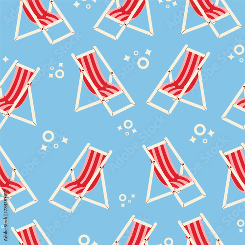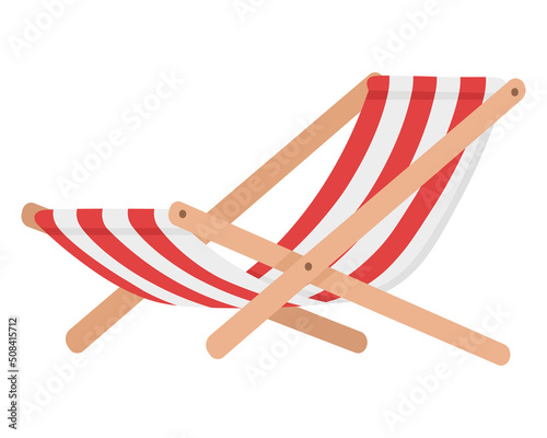 Вектор шезлонга. Значок летнего шезлонга на морском пляже. Изолированное полосатое кресло с откидной спинкой, складная мебель для отдыха на белом фоне
