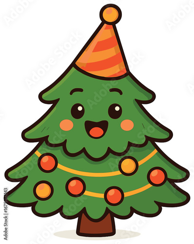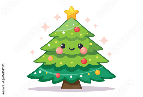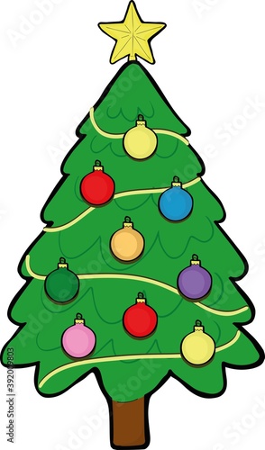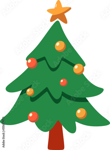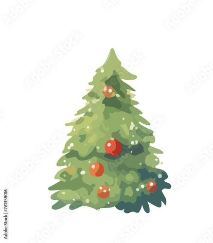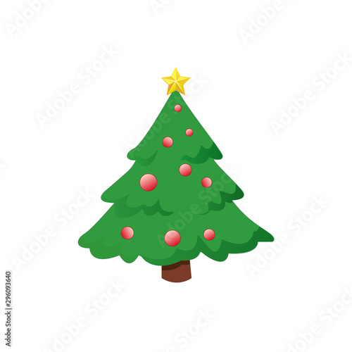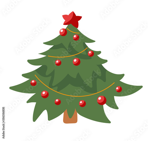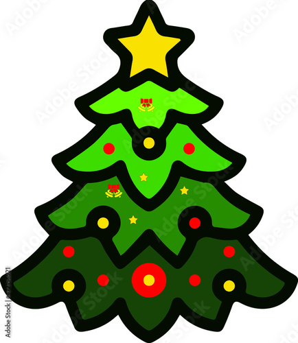 Украшенная векторная иконка рождественской елки, изолированная на белом фоне.