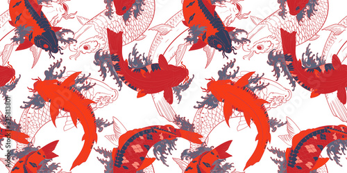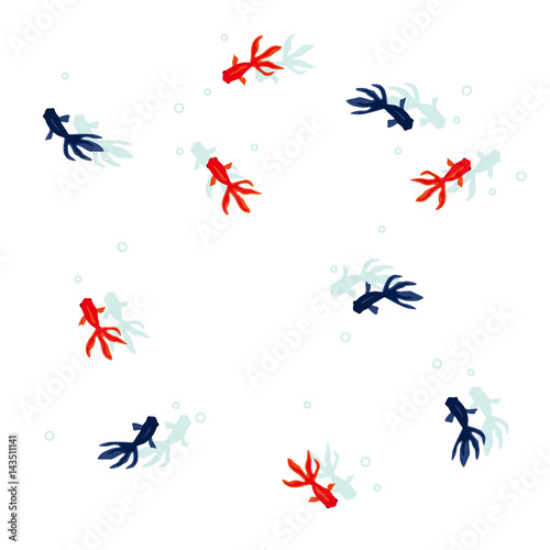 Набор рыб Кои, плоская векторная иллюстрация, изолированная на белом фоне. Декоративная рыба японский карп, вид сверху. Символ удачи, богатства.