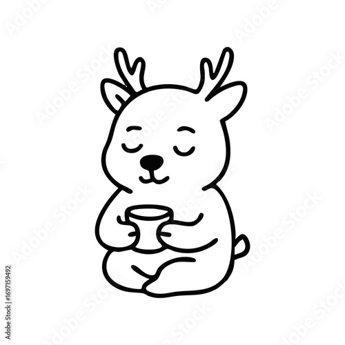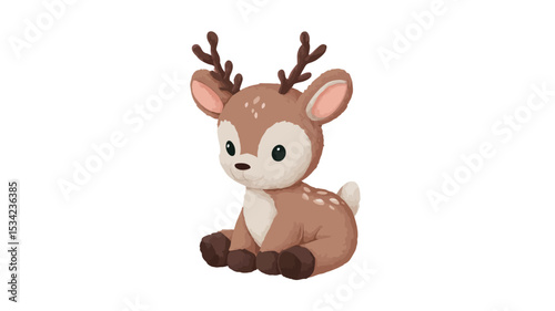 Вектор сна оленя. Мультяшный олень Бэмби, лесной олененок, милая иллюстрация сонного персонажа на белом фоне.