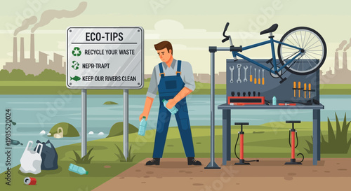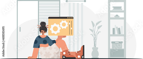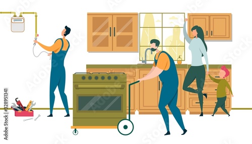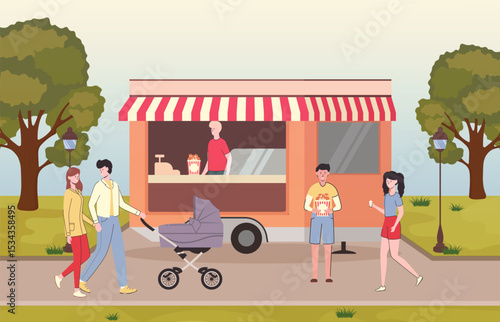 Доставленные посылки оставляли у входной двери дома. Безопасная бесконтактная доставка. Предотвратить распространение коронавируса. Женщина с новорожденным ребенком дома, курьер в маске на скутере. Векторная иллюстрация.