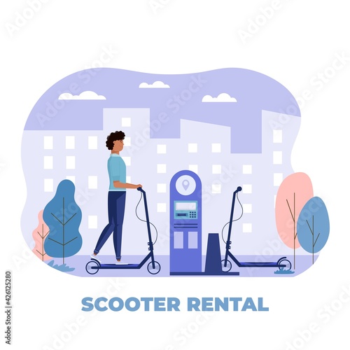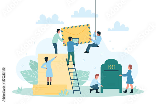 Курьер, погрузчик с ручной тележкой, полной посылок, картонных коробок, фургон доставки, плоская векторная иллюстрация. Концепция доставки, логистики, транспортных услуг.