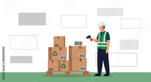 Векторная иллюстрация грузчика с картонными коробками. Концепция доставки людей элемент дизайна в плоском стиле, значок, выделенный на белом фоне.
