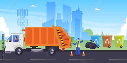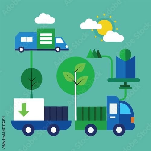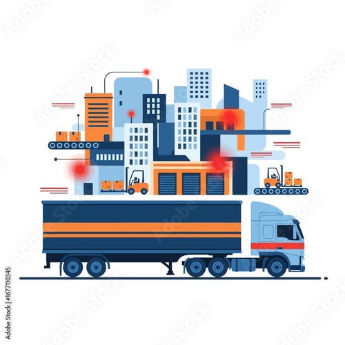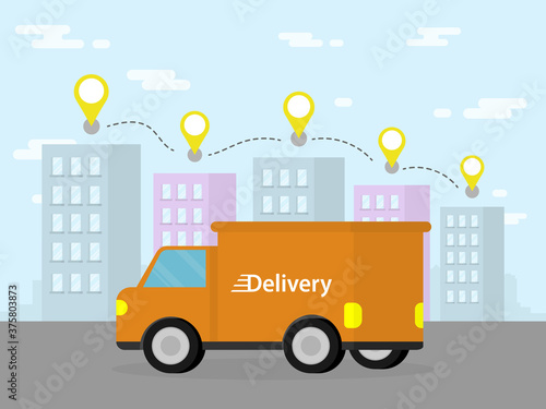 Векторный плакат грузовика доставки в плоском стиле. Концептуальный баннер службы логистики и доставки. Складские и грузовые перевозки.