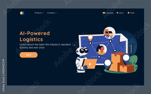 Доставка векторного шаблона веб-сайта, веб-страницы и дизайна целевой страницы для разработки веб-сайтов и мобильных сайтов. Концепция услуг компании по доставке.