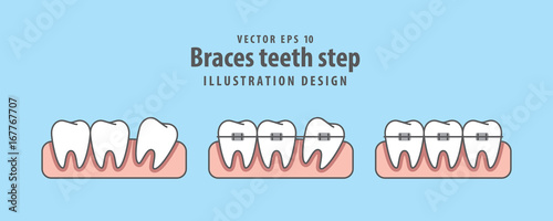 Установка зубных брекетов для выпрямления и лечения зубов инфографическая брошюра. Векторный плакат ортодонтической стоматологии. Медицинская иллюстрация здорового образа жизни и ухода за полостью рта