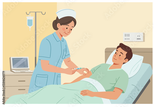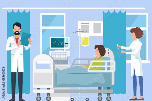 Стоматолог и ассистент, лечащий зубы пациента векторная иллюстрация. Мужчина с зубной болью на приеме у врача-стоматолога. Концепция стоматологии