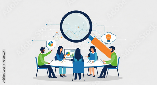 Мужчина-врач-профессионал с лупой смотрит на кожу лица своей пациентки, молодой девушки, сидящей в медицинском кресле, векторная иллюстрация. Концепция дерматологии, осмотра и консультации дерматолога.