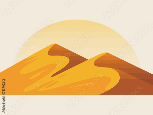 Фон путешествия по песку пустыни. Векторный 3d-пейзаж Сахары. Вырезанный из бумаги приключенческий плакат с песчаником и верблюдом. Африканский или арабский сельский пейзаж