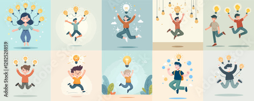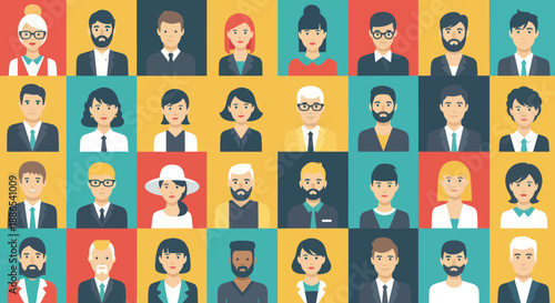 Разная раса, возраст и социальный диапазон, разнообразные многонациональные люди, квадратный красочный набор аватаров. Векторная иллюстрация счастливых улыбающихся людей. Студент, спортсмен, бизнесмен, рабочий, врач, дети