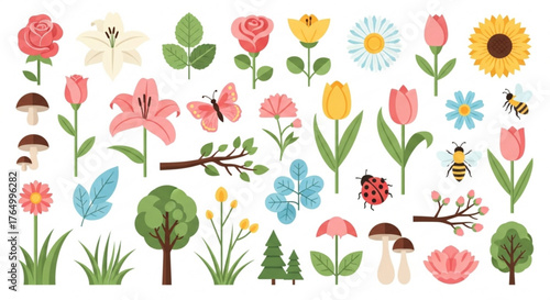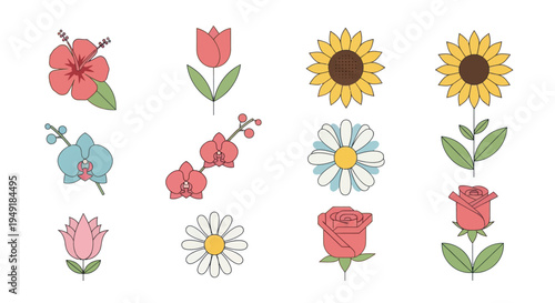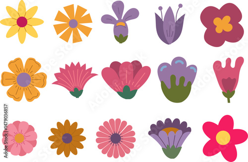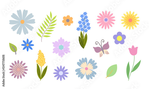 Различные виды цветочных векторных иллюстраций. Набор изолированных цветочных бутонов. Весенне-летняя часть растения ботанического сада для дизайна и декора