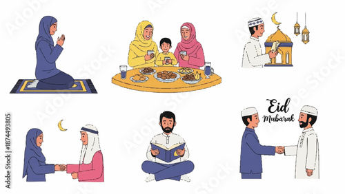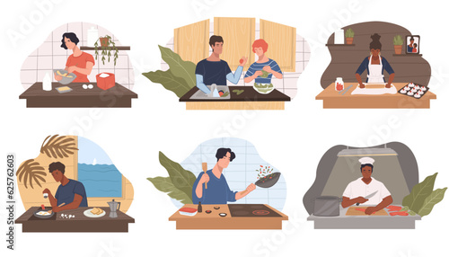 Различные студенческие персонажи учатся дома, в библиотеке, онлайн и оффлайн изолированном наборе. Ученики мужского и женского пола читают, выполняют домашние задания и исследовательскую работу, используя векторную иллюстрацию портативного компьютера