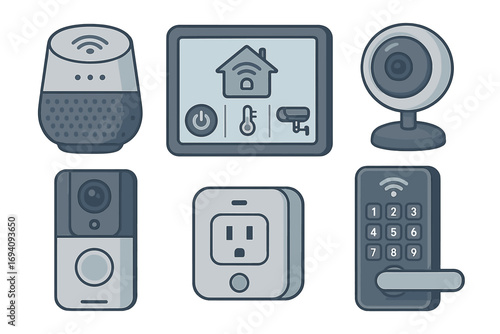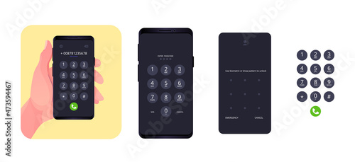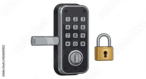 Цифровые дверные ручки с электронными кодовыми замками и реалистичным набором для доступа по отпечаткам пальцев. Современные ручки безопасности для элементов дизайна интерьера дома векторная иллюстрация