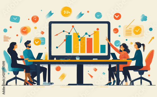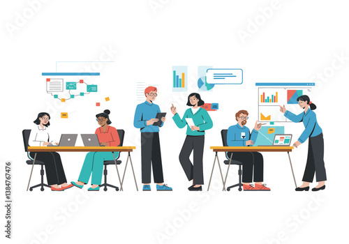 Маркетинг, векторная иллюстрация дизайна в плоском стиле. Команда цифрового маркетинга, концепция продвижения и продажи бизнес-продукта или услуги для веб-баннера, страницы веб-сайта и т.д.