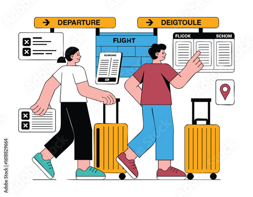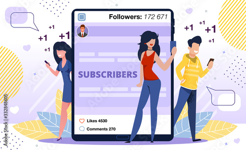 Мужчина покупает и женщина читает газетный журнал онлайн в киоске мобильного телефона, векторная плоская иллюстрация. Концепция цифрового газетного киоска с читателями новостей из мультфильмов мужского и женского пола.