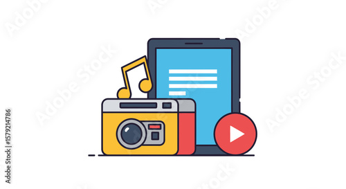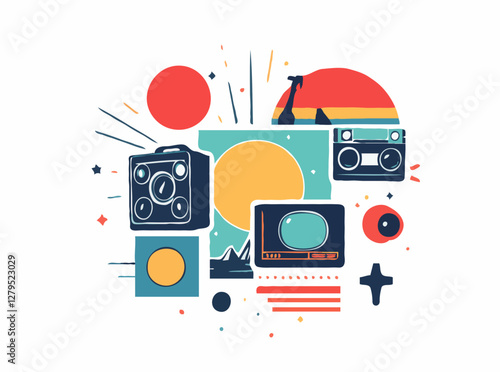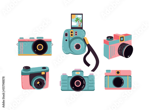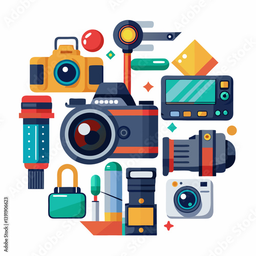 Цифровая фотокамера со вспышкой, коллекция 3d векторных плакатов. Концепция профессиональной фотосъемки и оборудования