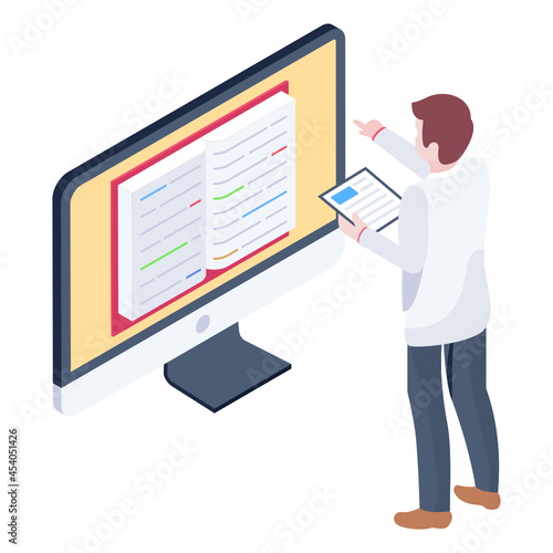 Концепция цифровой подписи. Векторный изометрический бизнесмен и смартфон с подписанным документом, значок безопасности данных.